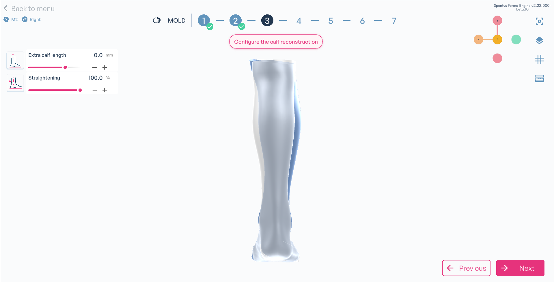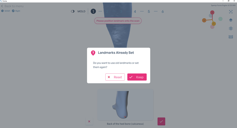 In the previous version of the software, you had to place the anatomical landmarks on the scan both at the scan position and at the mold level. Now, you only need to do this once.